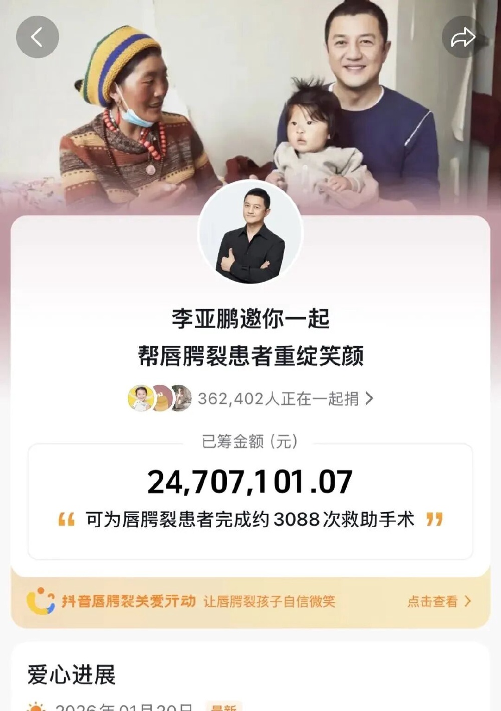 連日來,李亞鵬與其發(fā)起創(chuàng)辦的北京嫣然天使兒童醫(yī)院因租金問題與房東產(chǎn)生的糾紛,在網(wǎng)絡(luò)上持續(xù)升溫,成為公眾討論的焦點(diǎn)。 李亞鵬以坦率真誠的態(tài)度回應(yīng),引發(fā)全網(wǎng)捐款潮。 他十幾年的公益長跑,嫣然醫(yī)院7000余例免費(fèi)唇腭裂手術(shù),還有曾經(jīng)治愈的唇腭裂患者現(xiàn)身說法,都讓大家動(dòng)容。